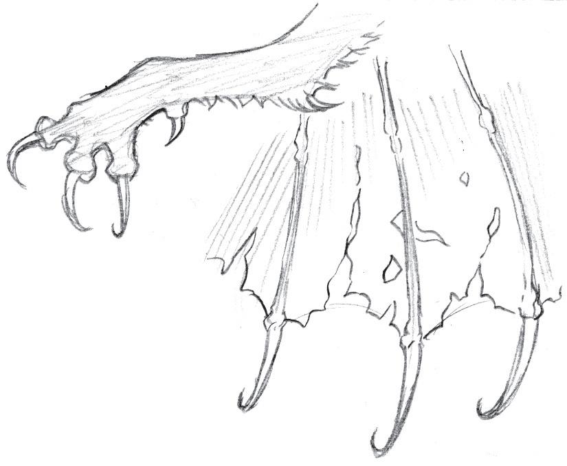 Når du tegner et monster med flaggermusvinger, bør du legge merke til hvor lik en flaggermusvinge er en menneskehånd.