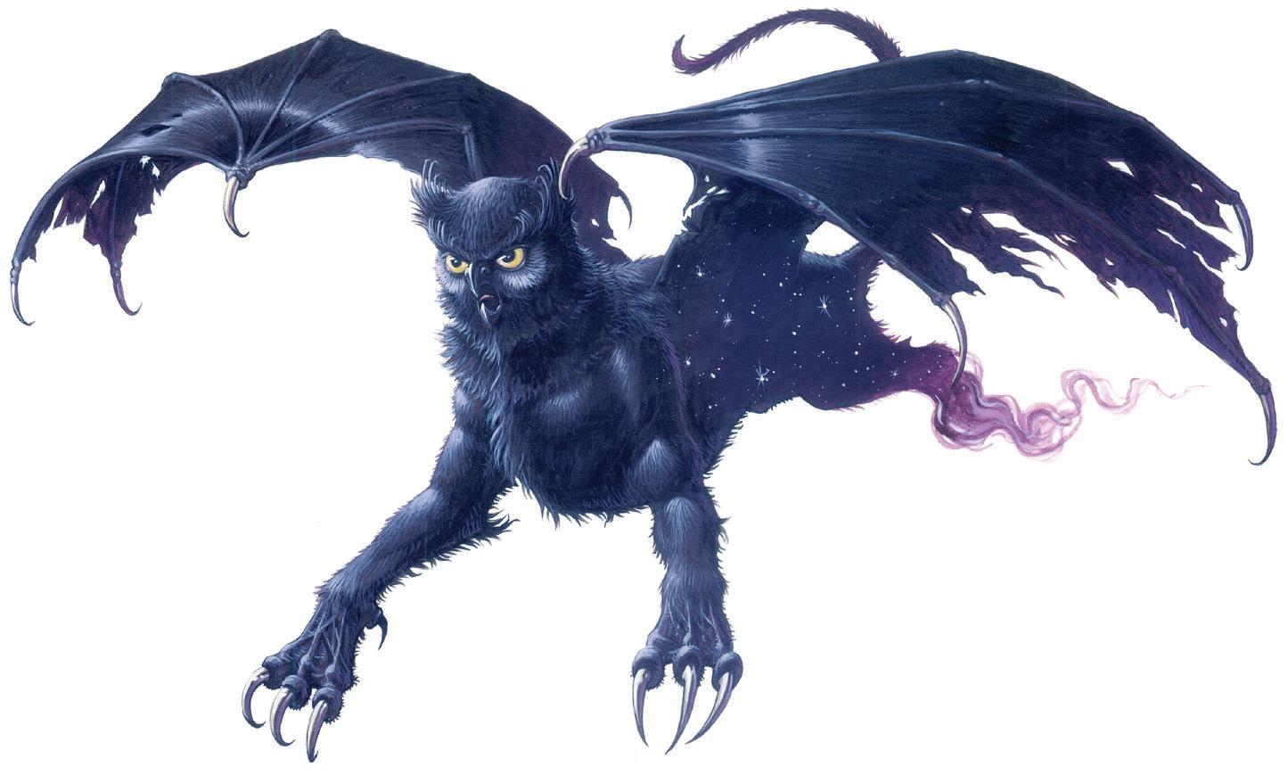 Dette nattvesenet vokser frem fra en mørk sky på en månelys himmel og er i ferd med å innta formen til nattdyrene det henter trekkene sine fra. Flaggermusvinger