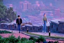케데헌 속 진우(왼쪽)와 루미가 낙산공원 성곽길을 걸으며 일종의 데이트를 하는 모습. /넷플릭스
