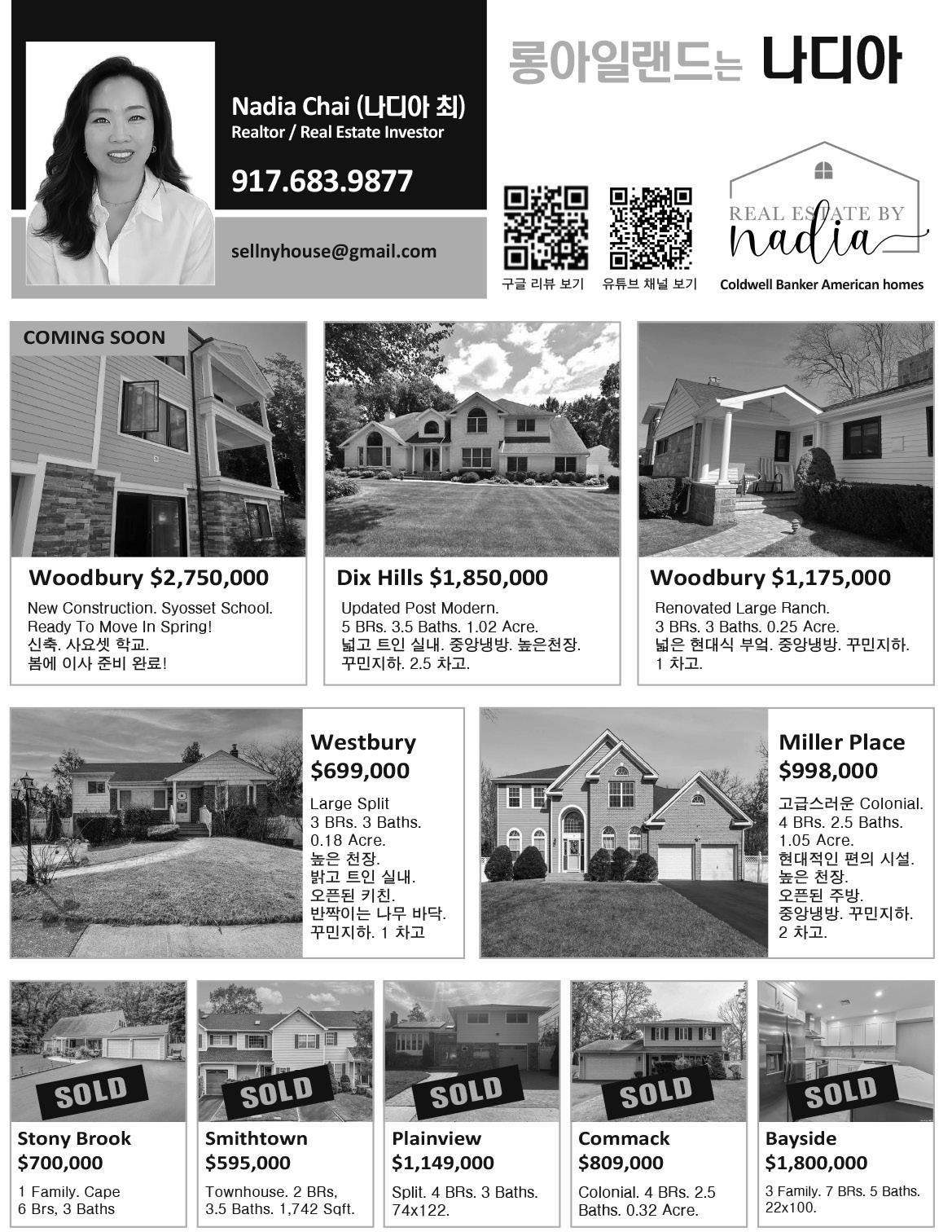 기차역(LIRR) 도보거리에 위치. 2007년에 새로 지은 벽돌 2페밀리. 6침실, 3욕실, 꾸민지하(입구따로), 중앙 냉난방 시스템, 드라이브웨이, 발코니 등등