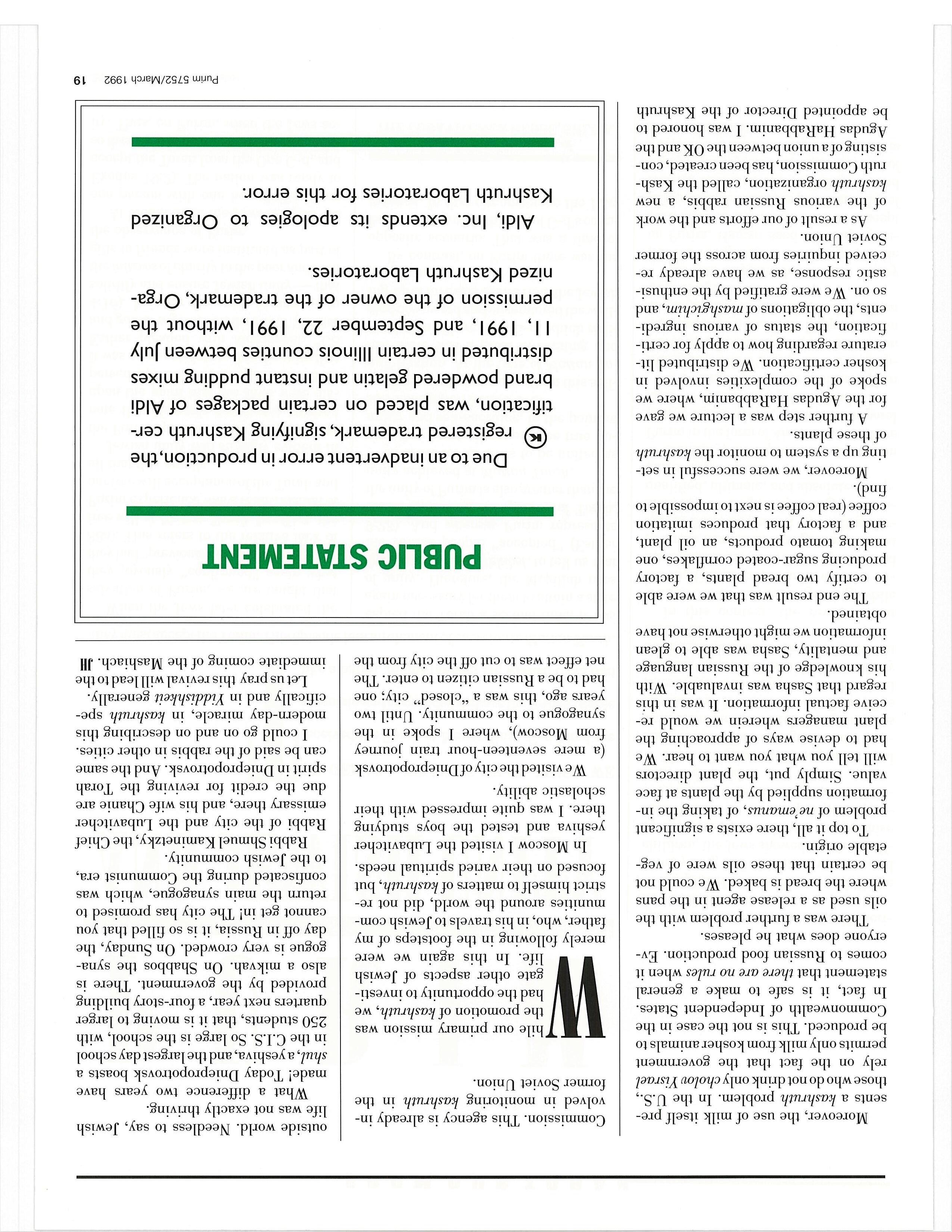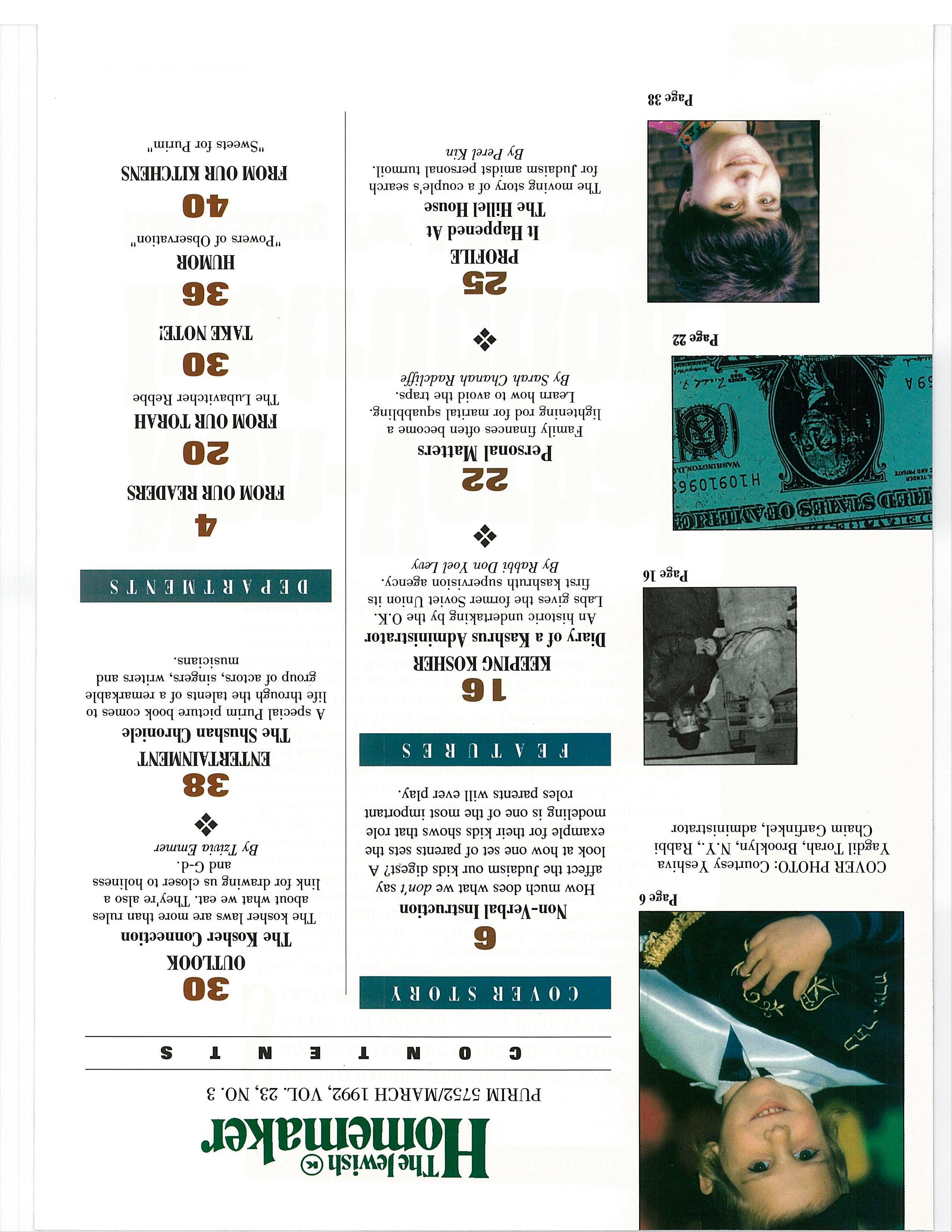 PURIM 5752/MARCH 1992, VOL. 23, NO. 3