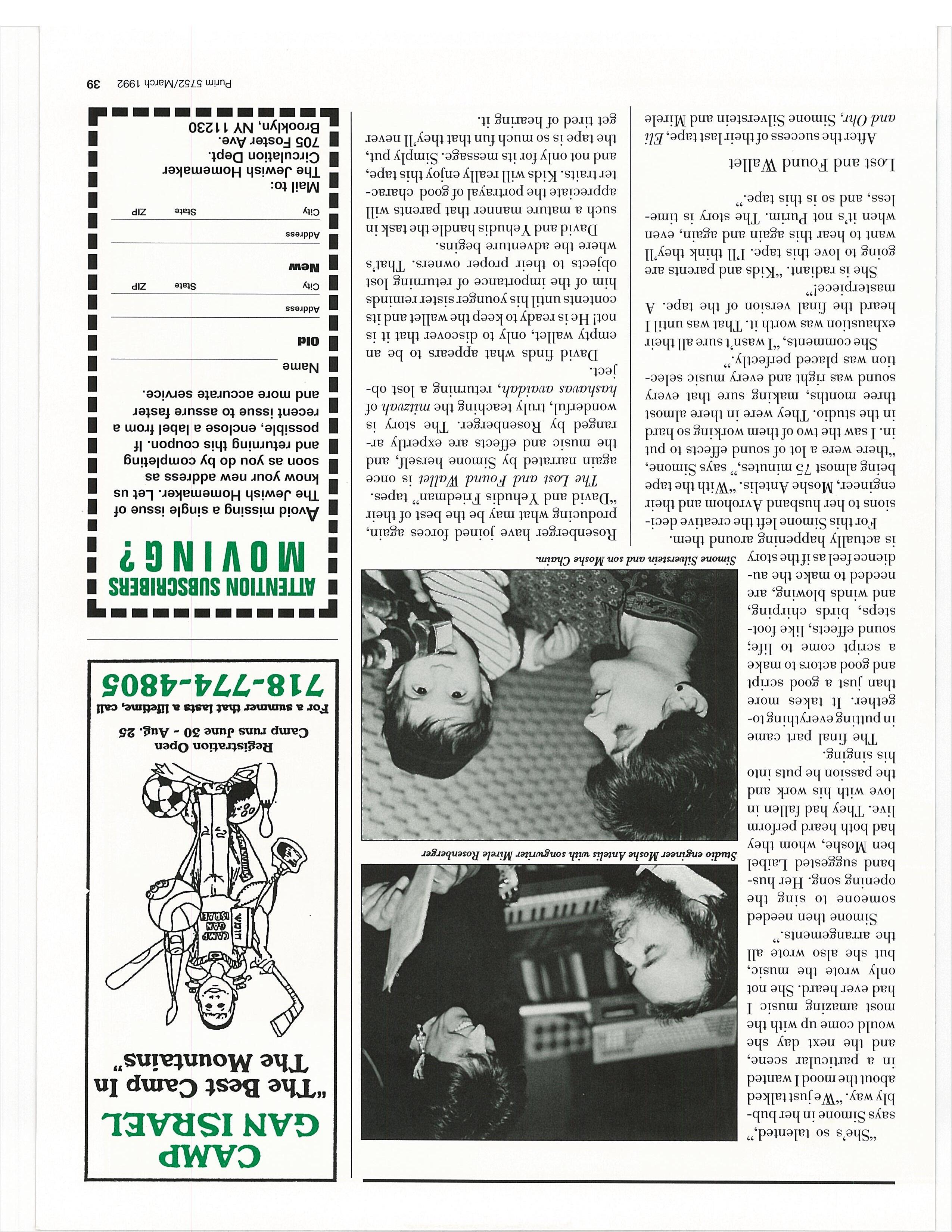 use the postage-paid envelope inside the magazineorcall :II-421-:1:9(inNy: 718-692-3900) for your subscription to HURRY! Return the postcard on the front cover, The Jewish Homemaker.