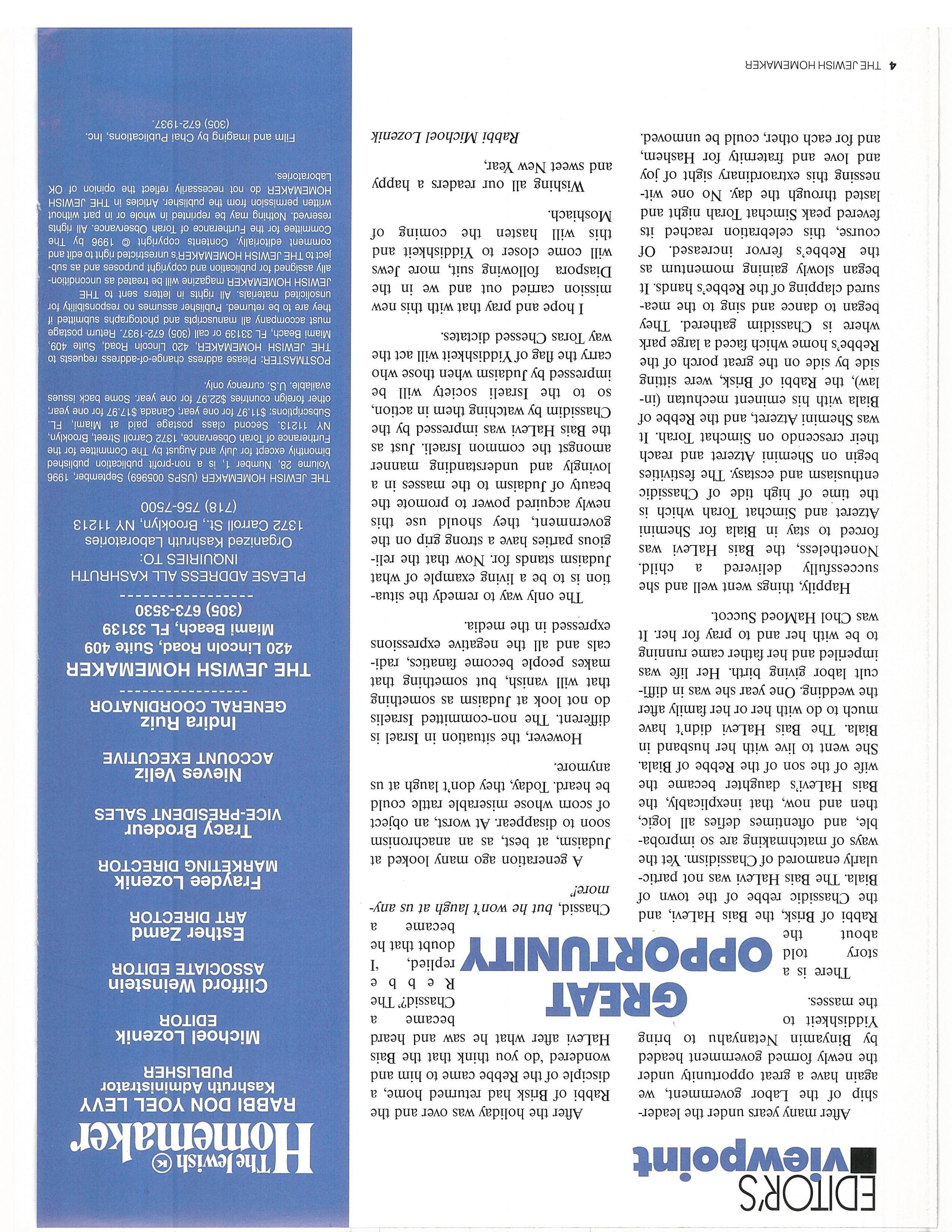 first hand information on whats new In Kosher products - even before you find them on the shelf! he world from a Jewish perspective - we give you information secular papers don’t dare print. rticles written by erudite scholars on timely Torah thoughts.