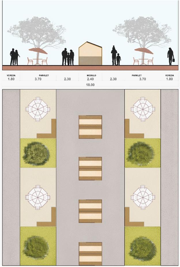 The main objective of this proposal is to strengthen the flow on Portugal Street, since informal commerce could be observed, we created recreation areas such as benches, and sales modules that have more efficiency than having a car lane, in such a way that it makes a more pleasant route for pedestrianization.