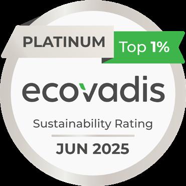 EcoVadis bewertet die Nachhaltigkeitsleistung von Unternehmen in den Bereichen Umwelt, Arbeits- und Menschenrechte, Ethik sowie nachhaltige Beschaffung. Die Auszeichnung würdigt unser Engagement für verantwortungsvolles Handeln in unserer Geschäftstätigkeit.