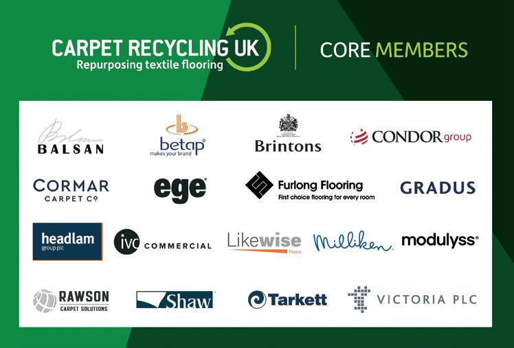 Core Members are Balsan, Betap, Brintons, Condor Group, Cormar, ege, Furlong Flooring, Gradus, Headlam Group, IVC Commercial, Likewise Floors, Milliken, Modulyss, Rawson Carpet Solutions, Shaw, Tarkett and Victoria Group. Through Carpet Recycling UK, the sector is becoming more aware of the Circular Economy and companies are helping their clients with sustainable product ranges, as well as with opportunities for segregating waste streams into reuse, recycling and treatment processes.