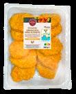 Aus dem Brustfilet; flüssig gewürzt; paniert; gegart; zum Erhitzen; 600-g-Packung (kg = 7.48)