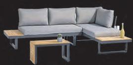 Aluminiumgestell mit Polyrattan dunkelgrau, bestehend aus 2 Loungesesseln, eine 2-sitzer Loungebank, 1 Loungetisch 130x75cm und 1 Loungehocker, inkl. Sitz- und Rückenkissen, Maße der Sitzecke: 250 x 210 cm 1.999,NUR 1.299,- GARTENMÖBELSET CORIDO 9-TEILIG bestehend aus 4 Polyrattan-Gartensesseln Corido sowie 4 Sitz- und Rückenkissen und 1 Alu-Gartentisch 180 x 100 cm mit extrem robuster Keramikplatte