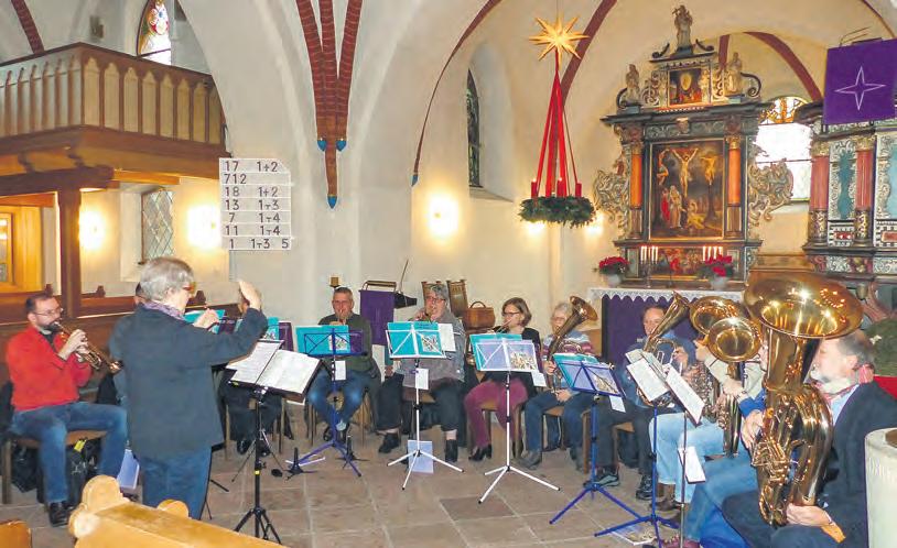 Der Posaunenchor der Kirchengemeinde ist nicht nur am Nachmittag für ein Platzkonzert gebucht, sondern spielt auch abends im Gotteshaus Passendes zum Advent.
