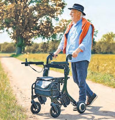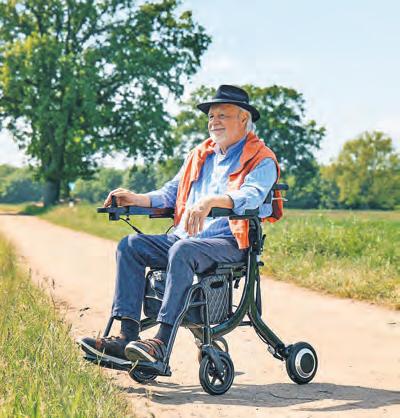 Ein Rollator bietet Unterstützung und Sicherheit beim eigenständigen Gehen. Bei Ermüdung oder schwierigem Untergrund wird der Rollator ruckzuck zum Elektrorollstuhl. Fotos: djd/Ludwig Bertram