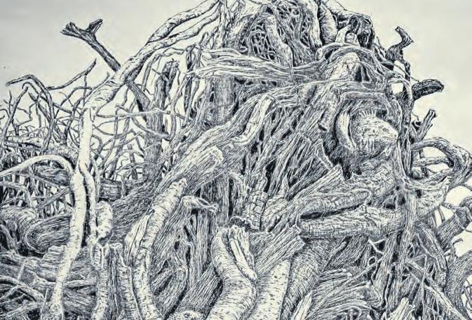 Die Radierung „Dickicht“ ist ein Beispiel für das Detailreichtum in Obernoltes