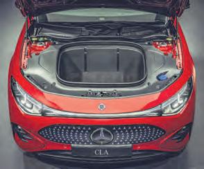 Als erster moderner Mercedes-Benz besitzt der CLA mit EQ Technologie einen vorderen Gepäckraum. Die Rückleuchten sind sternförmig und durch ein beleuchtetes Designelement verbunden.