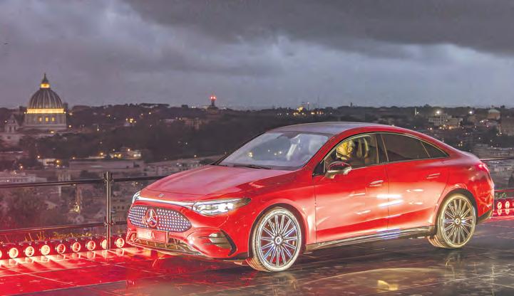 Der gerade in der italienischen Hauptstadt vorgestellte CLA markiert auch den Beginn einer neuen Design-Ära bei Mercedes-Benz – zum Beispiel mit dem beleuchteten Kühlergrill und sternförmigen Tagfahrlichtern. Highlight im Innenraum ist der opotional erhältliche schwebend gestaltete MBUX Superscreen, der sich über die gesamte Breite des Interieurs erstreckt.