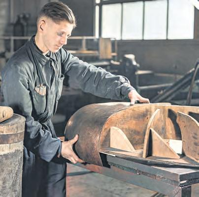 Bei kleinen Serien bestand das Urmodell aus Spanten, an denen die Maßhaltigkeit der geklopften Bleche überprüft wurde.
