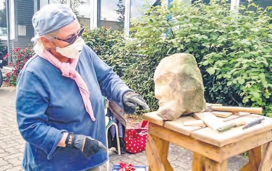 19 statt. Barbara Deutschmann gibt dann eine Einführung in die Techniken der Steinbearbeitung. Eine vorgefasste Idee in einem passend ausgesuchten Stein umsetzen, oder – inspiriert von Oberfläche, Form und Struktur des Steines – eine Idee neu entstehen lassen: Oft findet beides im kreativen Wechsel statt, weiß die Kursleiterin. Bei schlechtem Wetter wird in einem Zelt auf dem Gelände gearbeitet.