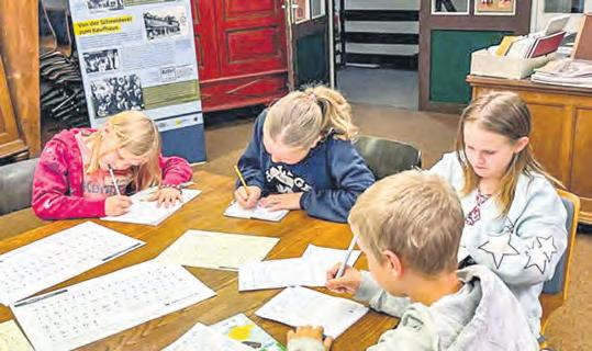 ACHIM – Bei einer recht ungewöhnlichen Ferienspaßaktion des Achimer Heimatvereins hatten 14 Kinder im Alter von sieben bis zwölf Jahren wirklich großes Vergnügen. Es ging um das Erlernen einer „Geheimschrift“. Ältere Semester kennen sie noch: Sütterlin. „Wir hatten nicht erwartet, dass das Interesse an dieser Aktion so groß war“, meinte begeistertMonika Köhler, die eine ausgewiesene Expertin der Schrift ist. Gemeinsam mit Anna Möllenberg hatte sie die Veranstaltung gut vorbereitet. Die teilnehmenden Kinder lernten viel über die spezielle Form der Schreibschrift, die in den 1980er Jahren langsam aus der Öffentlichkeit verschwand. Spontan stöberten die jungen Teilnehmenden anschließend noch auf dem Dachboden des Clü-