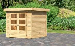 Bausatz aus Nadelholz unbehandelt , Sockelmaß: 200 x 200 cm, 28 mm Wandstärke, Doppeltür mit Echtglas inkl. Profilzylinderschloss, inkl. Holzfußboden, ohne Dachpappe