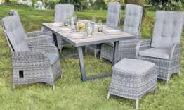 NUR 1299,- GARTENMÖBELSET KERAMO MIT AUSZIEHTISCH bestehend aus 6 Verstell-Geflechtsesseln Keramo mit Gasdruckfedersystem inkl. Sitzund Rückenkissen und 1 Alu-Ausziehtisch Keramo mit Keramikplatte 200/260 x