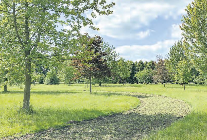 Wochen bunte Blüten als nahrhafte Angebote für Bienen, Hummeln und Schmetterlinge im Baumpark zu schaffen. Für Besucherinnen und Besucher des Parks wiederum wurden –pünktlich zum Sommerbeginn – zwei neue Liegebänke aus dem Holz heimischer Douglasien aufgestellt, auf denen Spaziergänger sich niederlassen können. Denn neben der reinen Bepflanzung setzt die Baumparkstiftung auch Maßnahmen um, die die Aufenthaltsqualität im Aboretum steigern sollen. hb