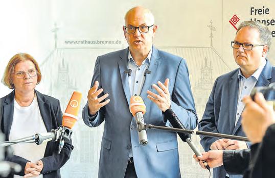 jahre über 8 Millionen Euro bereit. Ebenfalls geplant sind zwei neue medizinische Versorgunszentren. Eingespart werden soll mithilfe von Vereinfachungen in Verwaltungsprozessen im Sinne des Bürokratieabbaus ebenso wie mit der Beschleunigung von Bauverfahren zur Entlastung der Verwaltung. Doch einige Maßnahmen werden kritisch gesehen: „Keine der nötigen Einsparmaßnahmen ist etwas, was man sich wünschen würde“, so Bovenschulte. Dazu gehöre zum Beispiel die Erhöhung der Wochenarbeitszeit für Beamte. Auch an der Freikarte für Kinder und Jugendliche werde künftig gespart: Sie kann nicht mehr auf Volksfesten genutzt werden. mas
