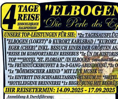 6.9.-7.9. Zum großen Polenmarkt in Slubice mit großer Vielfalt an Einkaufsmöglichkeiten Ü/F 139,– € 6 Tg. 19.9.-24.9. Nordfriesland mit Insel Föhr, Sylt & Hallig Hooge inkl. Schifffahrt & Ausflüge HP 792,– €