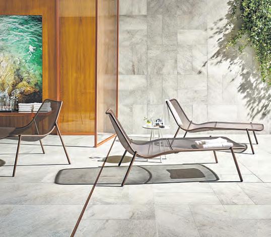 In der Sommerzeit wird die Terrasse zum zweiten Wohnraum. Im Trend sind Bodenbeläge, die Innen- und Außenbereich harmonisch verbinden. Einziger Unterschied: Die Fliesen für draußen sind doppelt so dick und damit wetterbeständig. Steinböden sind für den Außenbereich besonders beliebt, weil sie robust sind und der UVStrah lung, Regen und Kälte trot zen. Die kera mischen Fliesen werden bei hohen Temperatu ren und unter hohem Druck hergestellt. Das macht sie im Winter frostsicher. Im In nenbereich dagegen punk tet im mer schon Holz mit sei ner angenehm war men Ausstrah lung. Nun gibt es Fliesen aus Steinzeug auch in Hol zoptik. Sie sind