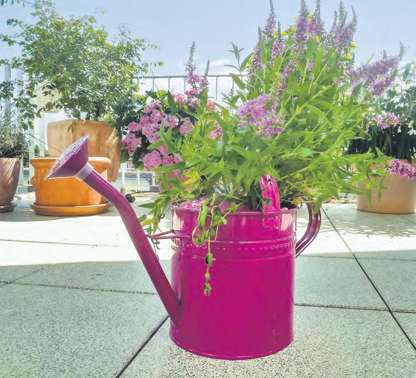Die ausrangierte Gießkanne wird zum Blumentopf – mit den entsprechenden Pflanzen ein garantierter Hingucker auf dem Balkon oder der Terrasse.