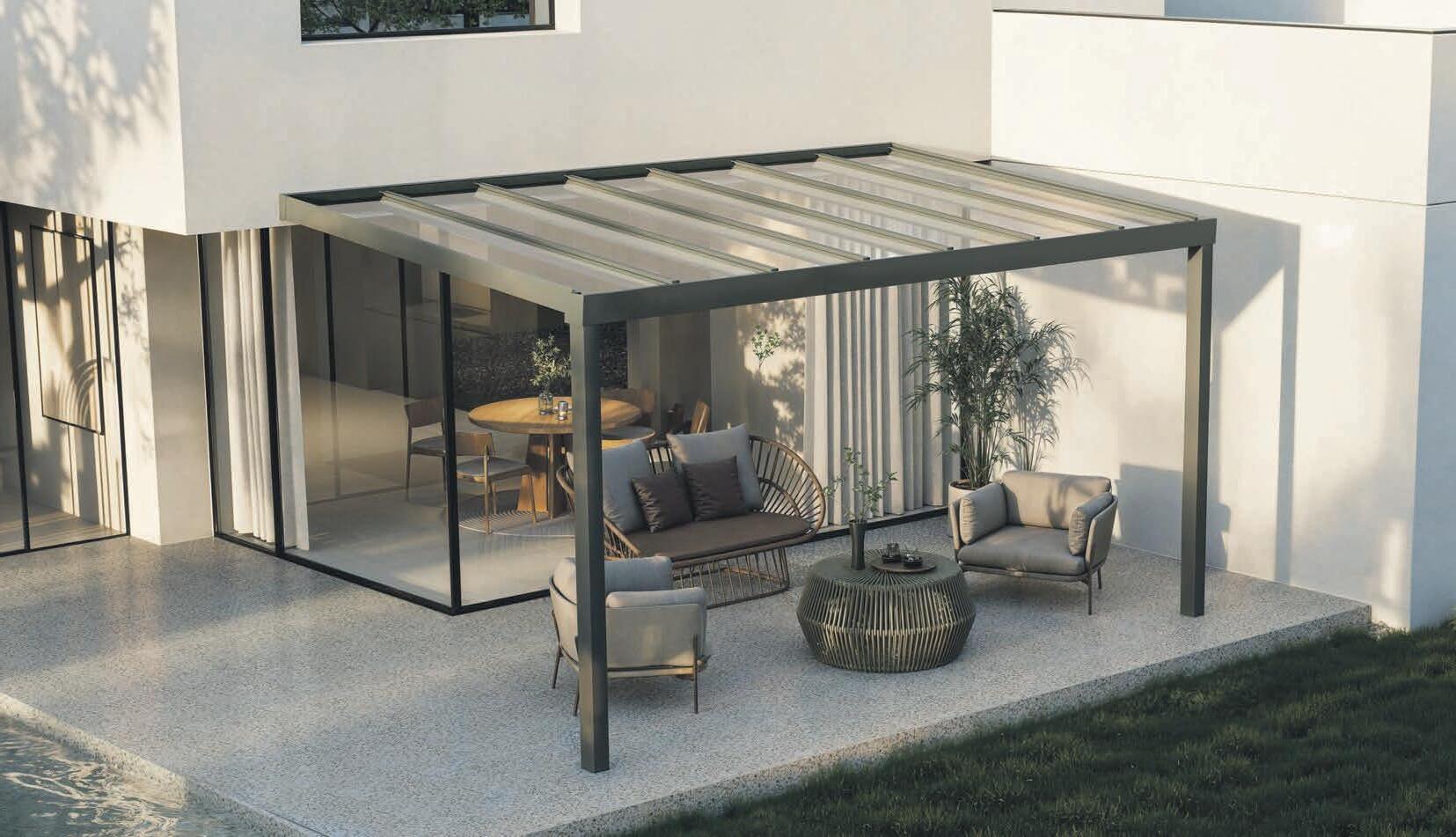 den, wobei sie weiterhin ausreichend Licht hindurchlässt. Eine integrierte Entwässerung verhindert die Ansammlung von Regenwasser.