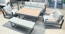 gel aus Aluminium wahlweise in silber oder farbig lackiert, jede WPC-Lamelle ist 8-fach mit Edelstahlschrauben verschraubt