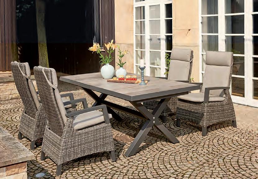 1bestehend aus 4 Verstell-Geflechtsesseln Corido mit Gasdruckfedersystem inkl. Sitz- und Rückenkissen und 1 Alu-Ausziehtisch Sincro mit Keramikplatte 200/260 x 100 cm 29,99 NUR 19,95 249,99