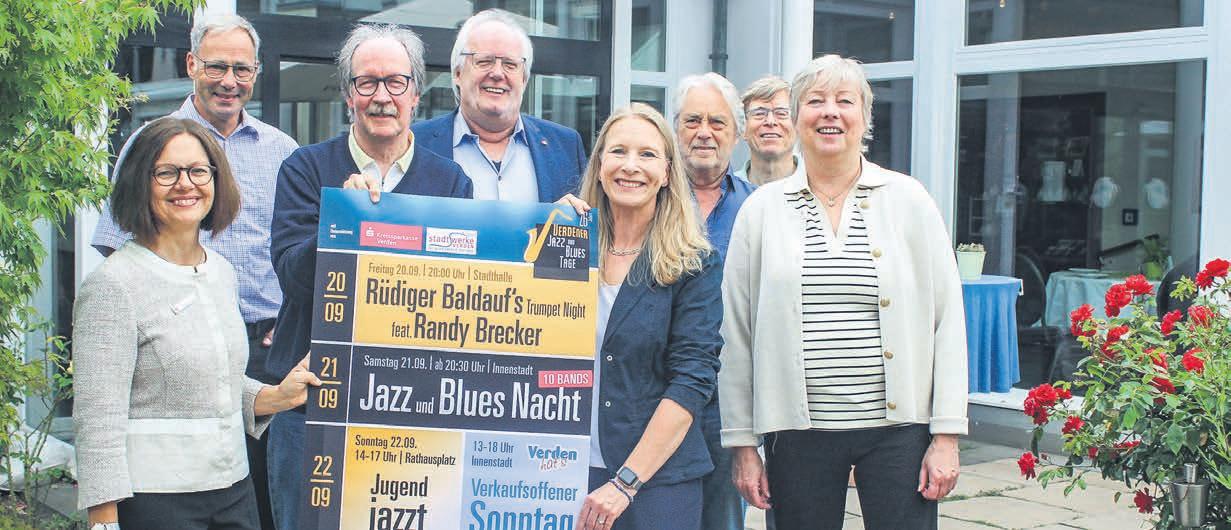 mar Koy verspricht „New Orleans Atmosphäre“ in der Innenstadt. „So ein attraktives Programm mit zwei Bands und zwei Sängerinnen hatten wir noch nie“, freut sich der Vorsitzende. Ermöglicht wird das kostenlose Liveerlebnis auch durch einen Zuschuss der Stadt Verden aus dem Fördertopf „Belebung der Innenstadt“. Abends, um 20.30 Uhr, startet dann die Jazz- und BluesNacht mit zehn Bands in zehn Locations. Schon ab 20 Uhr gibt es im Domgymnasium das traditionelle Dozentenkonzert. Danach liefern Dictionary of Funk eine Funkshow. Neben Eigenkompositionen spielen sie auch die großen Hits der Funk& Soulgeschichte von von Stevie Wonder über Prince bis hin zu Jamiroquai. Viele bekannte Bands, fast alle aus der Region, mit ganz unterschiedlichen Stilrichtungen sind in den Kneipen der Innenstadt zu hören. In der Kostbar zum Beispiel bietet die Bremer Band Sonic Health Club erfrischend groovenden Funk-Pop, den sie mit sowohl rockigen, jazzigen als auch balladesk-souligen Stilelementen anreichert. In der Gaststätte zur Brücke spielt Dr. Cleanhead. Das Quartett aus Bremen spielt Roots, Gospel, Blues, Creole, Folk und Boogie vom