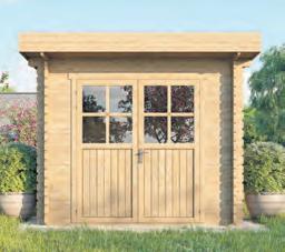 Bausatz aus Nadelholz unbehandelt , Sockelmaß: 200 x 200 cm, 28 mm Wandstärke, Doppeltür mit Echtglas inkl. Profilzylinderschloss, inkl. Holzfußboden, ohne Dachpappe