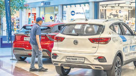 die Linienführung des gleichnamigen Sportcoupés konsequent in die Neuzeit. Apropos Stromer: In Bremens größter Mall sind auch diverse Elektromodelle dabei. So etwa der Ford Explorer. Dieser interpretiert das selbstbewusste Auftreten und den robusten Charme der SUV-Baureihe von Ford völlig neu. Neu bei Hyundai ist hingegen der kleine Stadt-Stromer Inster, der trotz kompakter Abmessungen mit einem außergewöhnlich großzügigen Platzangebot punktet. Beeindruckend ist auch seine Reichweite von bis zu 370 Kilometern. MG Motor wird im Doppelpack vertreten sein: Der Bestseller MG ZS präsentiert sich mit frischem Design, mehr Ausstattung und einem innovativen HybridAntrieb. Der neue Vollhybrid-SUV MG HS PHEV hat 13 Fahrassistenten plus Sicherheitssysteme an Bord. Ebenfalls einen Auftritt im Weserpark hat der ID.7, das erste Elektromodell von Volkswagen für die gehobene Mittelklasse. Mit einer Reichweite von bis zu 700 Kilometern ist der ID.7 laut Hersteller ein Effizienzchampion. Auf der Autoschau gibt es auch Campingfreunde ein Angebot: Wer seinen Urlaub in der Natur plant und ein passendes Wohnmobil sucht, kann sich von den Vorzügen des neuen California Beach überzeugen. Der Bestseller aus der Schmiede von Volkswagen Nutzfahrzeuge ist mit zwei Schiebetüren ausgestattet.