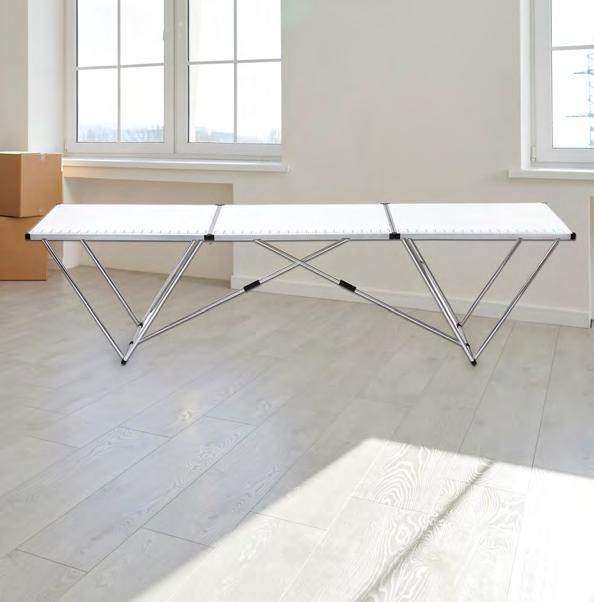 Maße: L 300 x B 60 x H 78 cm Platte mit aufgedruckter Maßskala, stabiles Stahlrohr-Untergestell, 431801