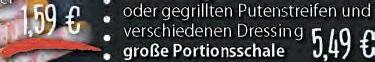 Schweinefilet BBQ in leckerer Barbecuesauce, dazu gegrilltes Ratatouille Gemüse und hausgemachtes Kartoffelgratin Portion 8,50 € Ricotta e Noci Spaghetti mit hausgemachtem Walnusspesto, Rucola, Basilikum und bunten Kirschtomaten Portion 7,90 €
