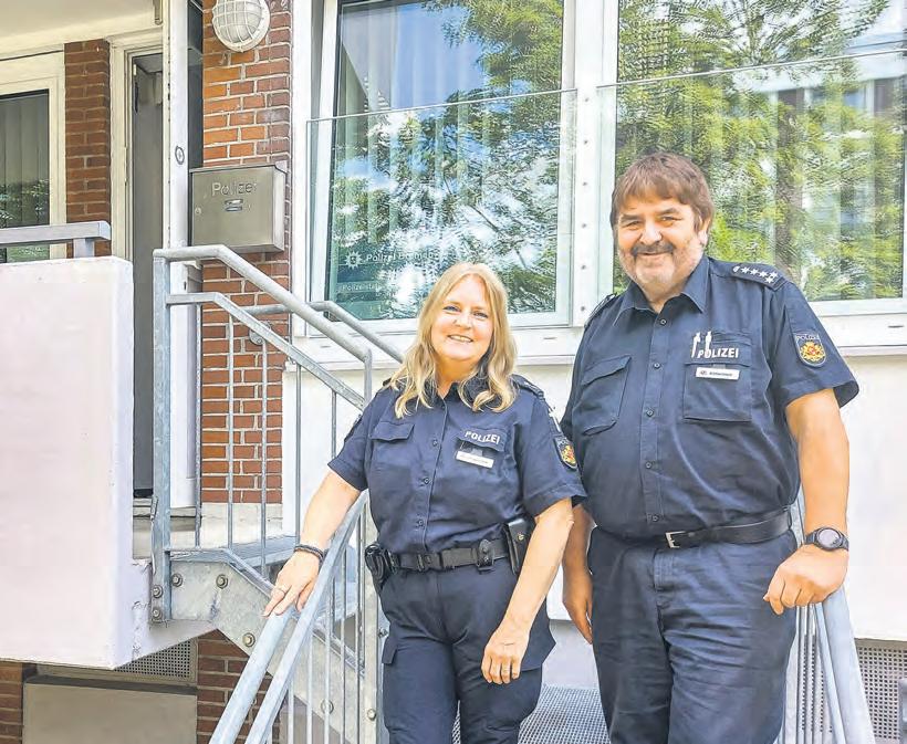 Sylvia Schwarzbeck mit Thomas Kötteritzsch, Revierleiter in Vegesack und Referatsleiter für Verkehrssachbearbeiter und Kontaktpolizisten, vor der Polizeistation in der Lüssumer Heide 27. Foto: rdr