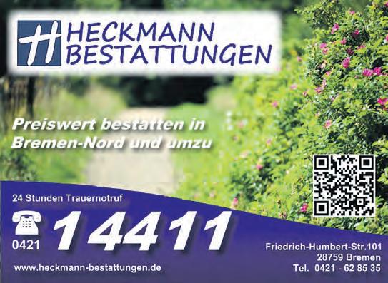 DieTrauerfeiermitanschließender Urnenbeisetzungfindetam Freitag, dem16.August2024,um13UhrinderKapelledesRekumer Friedhofes, RekumerStraße,statt.