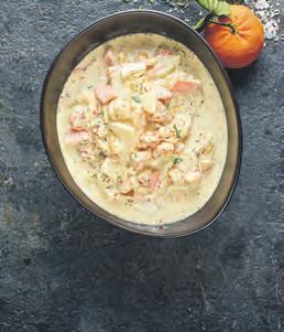 Portion 7,90 € Curry-Huhn zartes Hähnchenbrustfilet in Curry-Früchte-Sauce, dazu gebutterter Reis