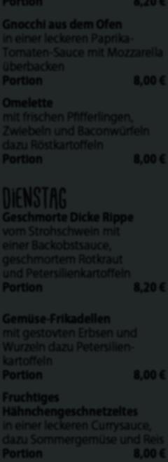 Vier-Jahreszeiten Eintopf mit Hähnchenfleisch, Ofenkartoffelwürfeln, Karotten, Basilkum und Kürbiskernen Portion 5,60 €