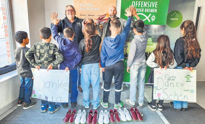 fensive Werder Bremen, die unter dem Motto „Spielend Deutsch lernen“ Fußballschuhe für Flüchtlingskinder bereitstellt. „Wir wollen andere, die es nicht so gut haben, unter-