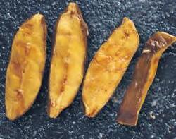 Senfeier in einer pikanten Senfsauce mit Speckstippe, dazu Buttermöhren und Petersilienkartoffeln