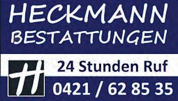 DieBeisetzungfindet im engstenFamilienkreis statt. Heckmann-Bestattungen, Rotdornallee 18, 28717 Bremen