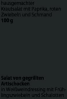 hausgemachter Krautsalat mit Paprika, roten Zwiebeln und Schmand 100 g Salat von gegrillten Artischocken in Weißweindressing