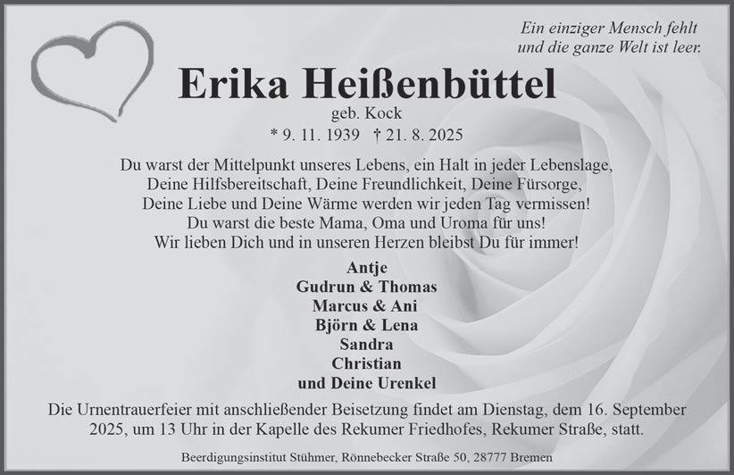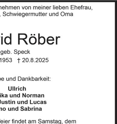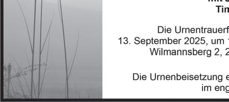 Die Trauerfeier mit anschließender Urnenbeisetzung findet am Donnerstag, dem 11. September 2025, um 10.00 Uhr in der Friedhofskapelle des Waldfriedhofes statt. Von freundlich zugedachten Blumengrüßen bitten wir abzusehen. geb Pannars