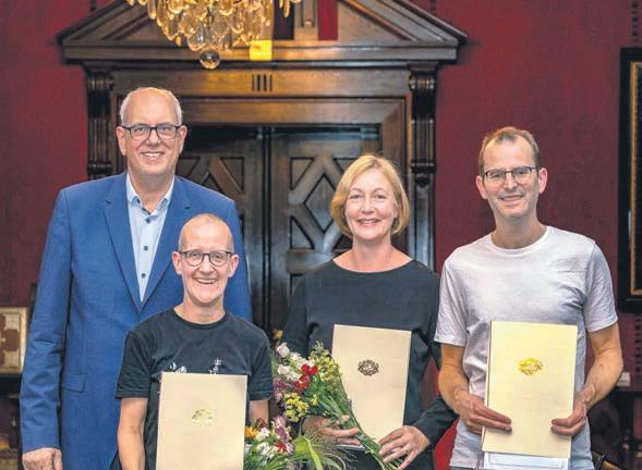 Beim Programm der Lit.Lesmona 2025 erfolgt der Auftakt mit den Bremer Stadtmusikanten: Um 15 Uhr eröffnen Anna Lott, Jörg Isermeyer und Florian Müller das Festival. Sie präsentieren das neue Stadtmusikantenbuch „Esel, Hund, Katze, Hahn“, mit neuen Geschich-