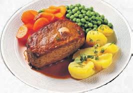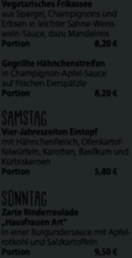 „Hausfrauen Art“ in einer Burgundersauce mit Apfelrotkohl und Salzkartoffeln Portion 9,50 €