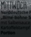 Norddeutsche Poularde „Birne-Bohne-Speck“ mit Salbeisauce und Kartoffelstampf Portion 8,90 €