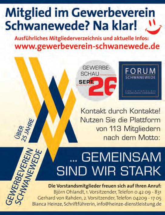 Schwanewede, OsterholzScharmbeck und Hagen im Bremischen, uns ihre Veranstaltungstermine ab sofort zuzusenden: an die Mail-Adresse redaktion@das-blv.de. RED