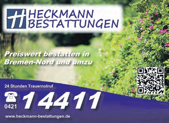 Die Trauerfeier mit anschließender Urnenbeisetzung findet Freitag, den 17. Oktober 2025, um 13 Uhr in der Kapelle des Farger Friedhofes, An der Amtsweide, statt.