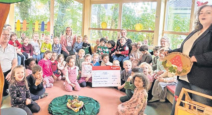 Die Übergabe des symbolischen Schecks erfolgte im Kindergarten.